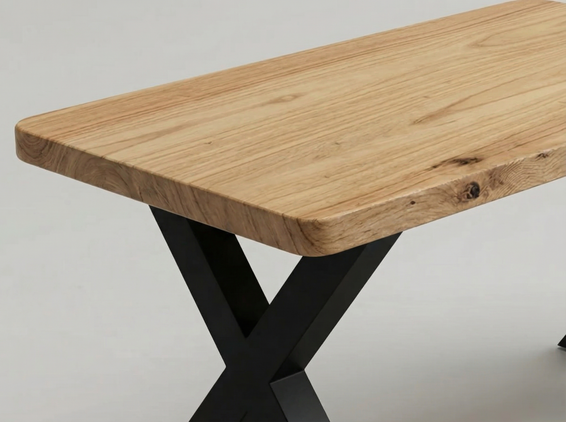 El reborde perimetral es un añadido estructural que se utiliza para duplicar el espesor visual de la madera en sus bordes. Por ejemplo: si seleccionás un espesor de 30mm y añadís el reborde, la tapa tendrá una terminación perimetral de 60mm de espesor final, dándole mayor robustez y presencia a tu mesa.